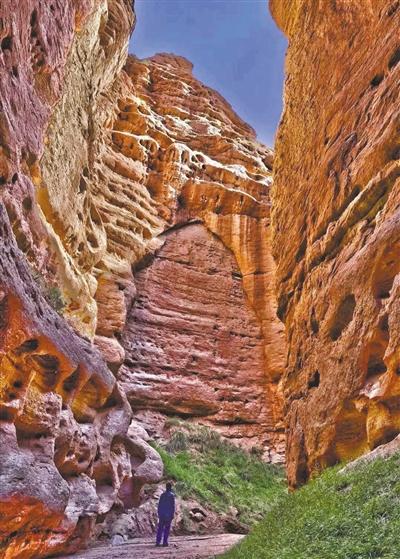 在“云直播”中,蒙古族姑娘有過這樣的描述:平山湖大峽谷海拔高度1500至2550米,其地質(zhì)構造屬于紅層地貌,是中生代侏羅紀至新生代第三紀沉積形成的“紅色沙礫巖”,距今已有一億八百萬年至兩億四千萬年。大峽谷從谷底到頂部分布著從寒武紀到新生代各個時期的巖層,層次清晰,色調(diào)各異,并且含有各個地質(zhì)年代的代表性生物化石,又被稱為“活的地質(zhì)史教科書”。