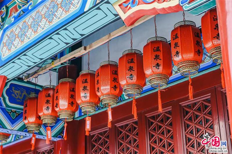 聽說這座寺廟的歷史可以追溯到400多年前,門前的石獅子十分莊嚴,傳遞著佛門圣地的意境。腳踩在雪地上,發(fā)出“嘎吱嘎吱”的聲音;進入了廟內,就能看見白雪覆蓋的木質小橋;還有廟宇內回廊上精致的鏤空鉤花和印著“溫泉寺”字樣的燈籠。