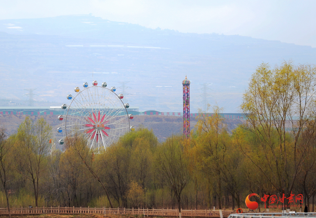 在濕地公園遠(yuǎn)眺遇見蘭州摩天輪
