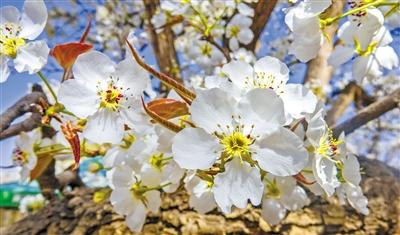 進(jìn)入古梨園,看見(jiàn)古梨樹雖然沒(méi)有綠葉的襯托,但粗壯遒勁的枝干上開出簇簇潔白的梨花,樹皮的皴皺變得模糊,整個(gè)古樹也變得清新雅麗、溫婉可人起來(lái),再看著樹下白墻青瓦的村屋,會(huì)讓人一下子忘掉冬天,這就是人們?yōu)槭裁磹?ài)在春天逛古梨園的原因吧。