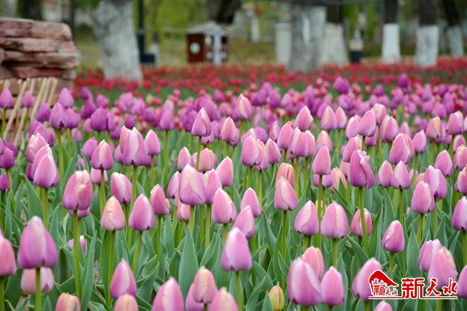 在經(jīng)歷了一個漫長的嚴冬之后,馬跑泉公園的25萬余株郁金香和5萬余盆各類時令鮮花在麥積大地上郁郁蔥蔥的綻放著。