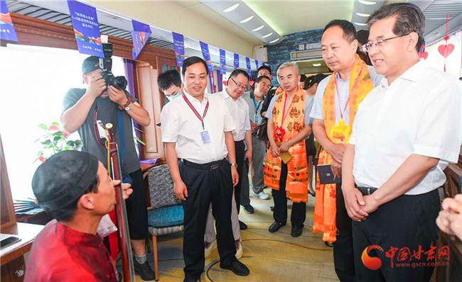 專列到達(dá)西安南站后,陜西省文旅廳及文旅相關(guān)部門對(duì)“環(huán)西部火車游”專列的到來(lái)表示熱烈的歡迎,陜西省文旅廳負(fù)責(zé)人在甘肅省委宣傳部副部長(zhǎng)、省文旅廳黨組書記、廳長(zhǎng)陳衛(wèi)中和武威市文體廣電和旅游局負(fù)責(zé)人的陪同下參觀了“環(huán)西部火車游”武威館,并欣賞了國(guó)家級(jí)非遺項(xiàng)目“涼州賢孝”表演。