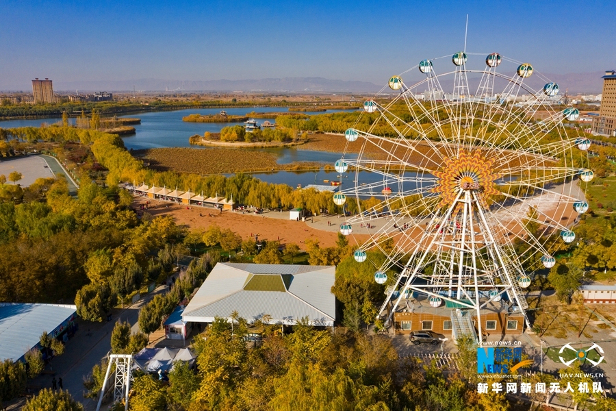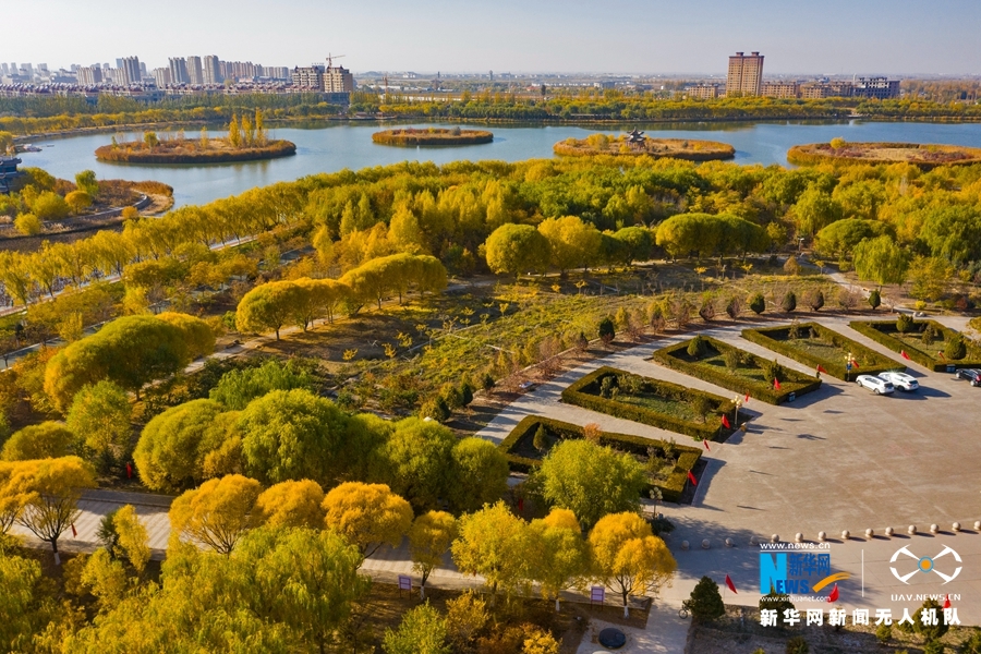 深秋時節(jié),國家4A級景區(qū)甘肅省張掖潤泉湖公園秋水依依,草木金黃,呈現(xiàn)出一幅斑斕畫卷。新華網(wǎng)發(fā)(成林 攝)