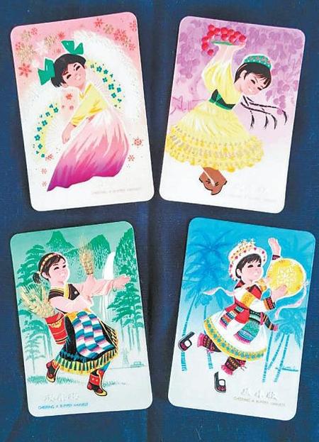 1978年,甘肅省歌舞團(tuán)創(chuàng)作演出的《絲路花雨》,取材自敦煌壁畫和絲綢之路題材,以和平與友誼為主題,講述敦煌畫工“神筆張”及女兒英娘與波斯商人患難與共、生死相交的故事。1978年赴京演出,榮獲文化部慶祝新中國成立30周年獻(xiàn)禮創(chuàng)作一等獎、演出一等獎,1994年又獲中華民族20世紀(jì)舞蹈經(jīng)典作品金像獎,幾十年來經(jīng)久不衰。為此,蘭州印刷廠于1980年、中國銀行新加坡分行、內(nèi)蒙古自治區(qū)工藝美術(shù)處于1981年分別發(fā)行了《絲路花雨》年歷片,以此留存了當(dāng)年劇目的演出風(fēng)光。