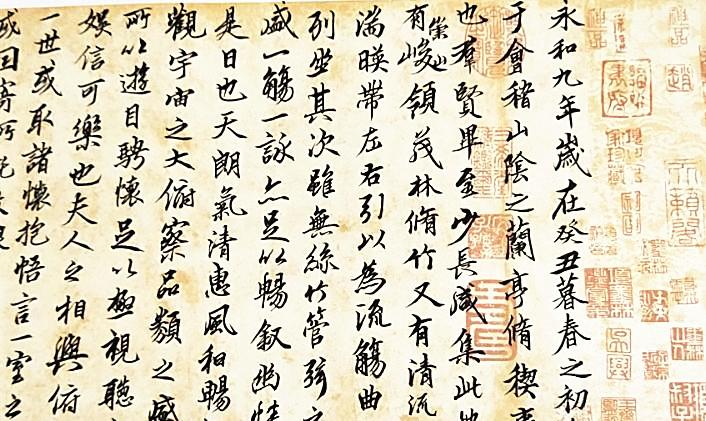 何為不朽?不朽在于引起后代的共鳴,于后人幾成緬想。那遠去的曾經(jīng),在身邊現(xiàn)實中已經(jīng)難以找尋,個體的記憶怎樣傳承歷史厚重,也許這也是一種最好方式。那張涂抹得一塌糊涂的紙,一千多年來,從沒有消停過,穿越時空,無數(shù)人一棒接過一棒,在手中傳承,揣摸,膜頂,令無數(shù)書法愛好者追慕效法。很多人正是通過觀摩學習《蘭亭序》,愛上書法藝術(shù),進而走入這門高雅的書法藝術(shù)殿堂。