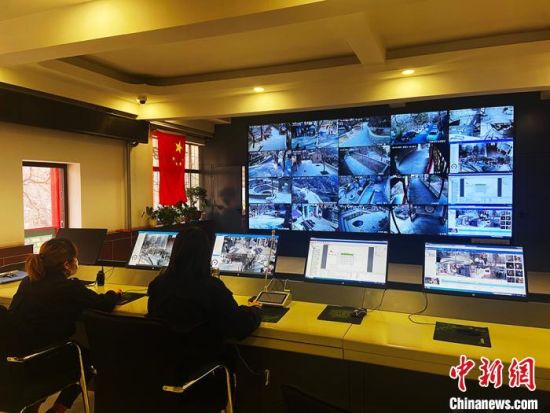 蘭州五泉山公園對古建筑群啟動數(shù)字化保護,智能監(jiān)控室聯(lián)網(wǎng)公安系統(tǒng)。 高康迪 攝