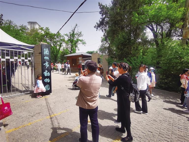 “我要和動物園的大門合影” “快來給我和‘蘭州市動物園’的大牌子拍張照”……5月7日10時許,前往蘭州市動物園游玩的市民絡繹不絕,大門口懸掛著的略顯斑駁的黑底綠字的“蘭州市動物園”的門牌,仿佛是最能觸動人們記憶的“坐標點”,大家排隊再和它照張相成為進園的固定儀式。