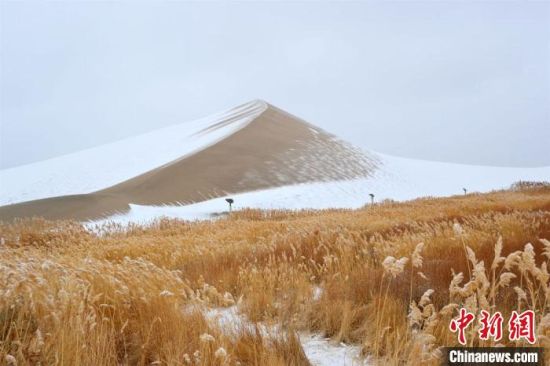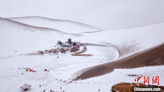 2月17日,甘肅敦煌迎來降雪天氣,大漠山川被皚皚白雪覆蓋,像一幅幅清秀淡雅的水墨山水畫。敦煌著名風(fēng)景區(qū)——鳴沙山月牙泉景區(qū)吸引游客前來觀賞難得一見的大漠雪景。這次降雪的特點(diǎn)是降雪量大,但氣溫并不是很低,游人盡情體驗(yàn)“沙雪交融”的絲路盛景。(王斌銀 張曉亮)