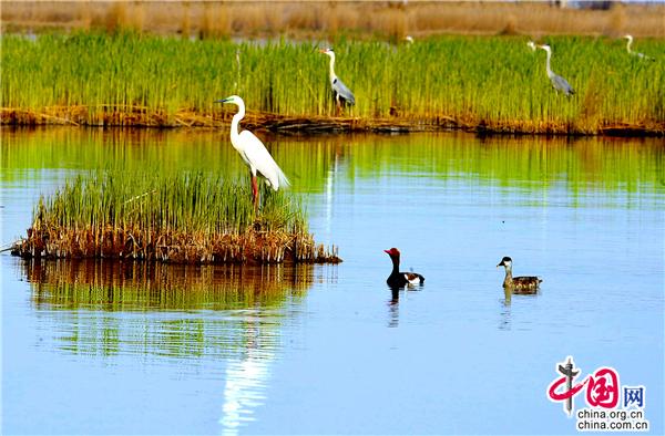 很多鳥(niǎo)類對(duì)生存區(qū)域極為挑剔,環(huán)境稍不如意,便會(huì)另覓佳處。這里水質(zhì)清冽,空氣純凈,湖草肥美,魚(yú)食豐盛,正是很多鳥(niǎo)類遠(yuǎn)途中的理想家園或行途驛站。據(jù)悉,全球九條候鳥(niǎo)遷徙路線中有三條路過(guò)中國(guó),其中有兩條遷徙路線在寧夏重疊,沙湖以其良好的自然生態(tài)環(huán)境,為眾多候鳥(niǎo)過(guò)境寧夏時(shí)提供了重要棲息繁衍地。