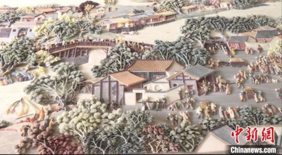彩石鑲嵌技藝是國(guó)家級(jí)非物質(zhì)文化遺產(chǎn),在浙江省溫州市瑞安市,民間工藝大師李成者等人耗時(shí)3年,制作巨幅彩石鑲嵌作品《清明上河圖》,重現(xiàn)彩石鑲嵌非遺技藝的獨(dú)特魅力。