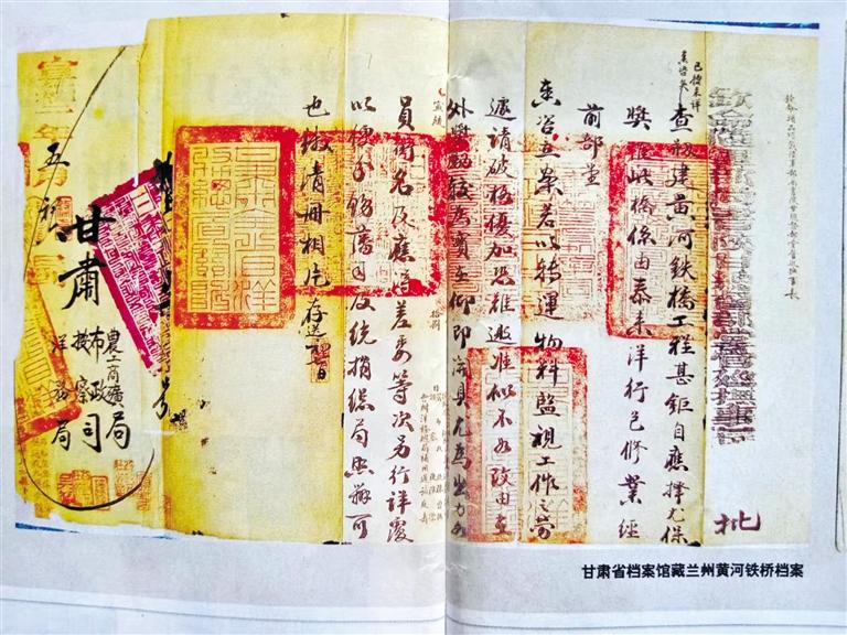 在古金城蘭州架設(shè)橫跨于黃河南北兩岸的鐵橋,曾是左宗棠的夢想,只因當(dāng)時洋商索價過高而作罷。30年后,正值清末實行新政,黃河鐵橋在陜甘總督升允和彭英甲的任上創(chuàng)修成功。建橋過程慘淡經(jīng)營,艱苦備至,已人所共知。好在建設(shè)黃河鐵橋形成的檔案,歸檔于甘肅農(nóng)工商礦總局,沒有存于當(dāng)時的布政使司,幸運地躲過了民國二年那一劫。甘肅農(nóng)工商礦總局后更名為甘肅省署實業(yè)廳,民國十六年(1927年)甘肅省政府改實業(yè)廳為建設(shè)廳,這些檔案存于建設(shè)廳。1949年7月,國民黨甘肅省政府逃離前發(fā)出緊急命令:“轉(zhuǎn)移前將政府檔案做緊急處理”,重要檔案進(jìn)行“焚毀、埋藏、轉(zhuǎn)移”,次要檔案“從速列冊銷毀”。只因倉皇逃離,未來得及銷毀。人民解放軍從解放蘭州的戰(zhàn)火中把包括鐵橋檔案在內(nèi)的許多檔案搶救出來,由蘭州軍管會接管。2002年,《蘭州黃河鐵橋檔案》入選首批《中國檔案文獻(xiàn)遺產(chǎn)名錄》。