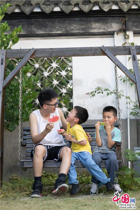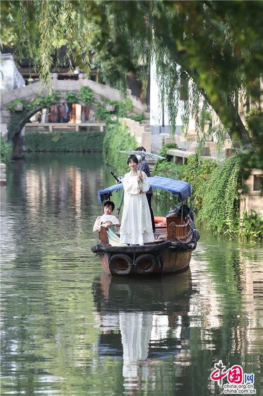 夏日遲遲至,古鎮(zhèn)緩緩行。坐一趟手搖船,穿行在23°的水巷,看陽光透過樹影落在水面上的斑駁,聽搖櫓聲聲撥動(dòng)碧水的悠然,悄然經(jīng)過匆匆那年。赴一場紙箱王之約,穿梭在紙藝王國,吃一頓盈滿時(shí)光的紙上美食。坐上紙做的小火車放飛夢(mèng)想,在紙箱王古郵局描繪出未來的藍(lán)圖。行走在貞豐文化街上,看貞豐十二坊的匠人匠心,觀水鄉(xiāng)周莊的人間煙火。走累了便去蘇繡藝舍感受蘇繡的獨(dú)特魅力,到爐韻沉香研習(xí)香道茶藝……一盞清茶一爐香,一衣帶水歸故鄉(xiāng)。