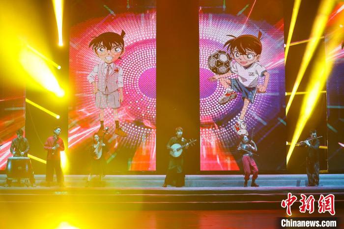 整段故事中,主創(chuàng)還通過二胡、笛子、琵琶、古箏、阮、大鼓、笙簫等樂器不斷穿插民眾耳熟能詳?shù)慕?jīng)典動漫曲目,引發(fā)集體懷舊。演出最后,現(xiàn)場還出現(xiàn)聽障兒童頌唱《小星星》,讓整個表演多了一層內涵,現(xiàn)場觀眾淚目。表演結束后,李星星和一眾主創(chuàng)返場帶來國樂演奏《定軍山》。