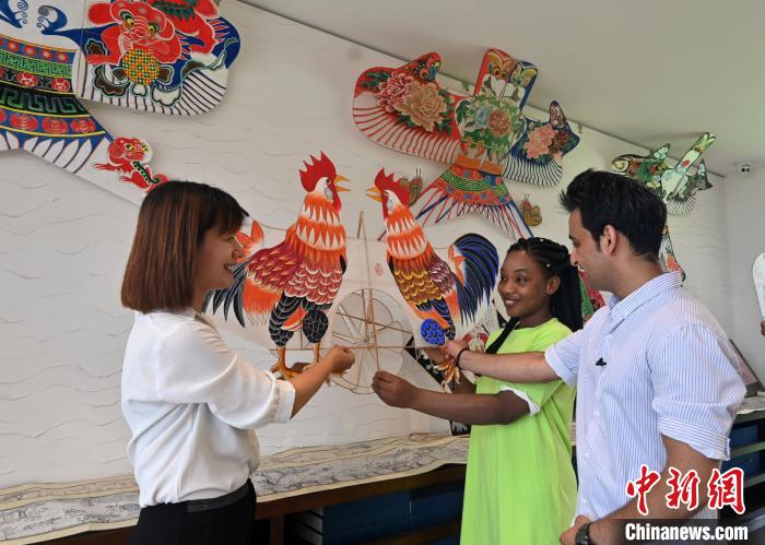 中新網(wǎng)廊坊7月21日電 (李玉素 宋敏濤)21日,來(lái)自河北師范大學(xué)的尼日利亞籍留學(xué)生馬臻和巴基斯坦籍留學(xué)生烏瑪爾,來(lái)到河北省廊坊市安次區(qū)第什里風(fēng)箏小鎮(zhèn),體驗(yàn)中國(guó)傳統(tǒng)的風(fēng)箏文化。