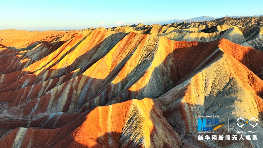 夏日傍晚,在夕陽的映照下,甘肅張掖七彩丹霞色彩艷麗、層理交錯,美不勝收。新華網(wǎng)發(fā)(成林 攝)
