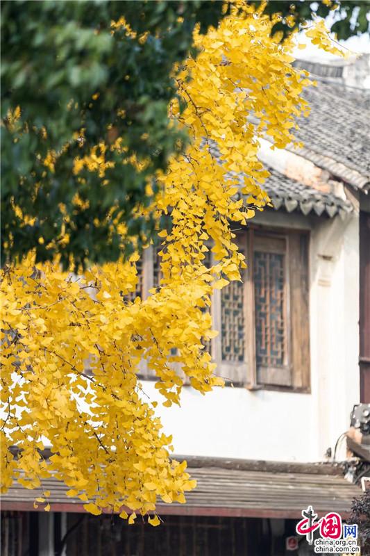 迷失在銀杏葉的金黃色夢(mèng)里,人與秋俱醉。去博物館吧,門(mén)前的銀杏快黃了。目光落在樹(shù)梢,大片大片的金燦籠絡(luò)著秋味,層層疊疊,如軟緞般沁潤(rùn)著游者的心緒。旋舞縹緲的落葉婀娜著腰姿,在空中打著圈兒,透著光亮,醞釀著驚喜。有人說(shuō),這是周莊最受歡迎的大樹(shù)(不接受反駁),豐盛的樹(shù)葉開(kāi)出一朵碩大的樹(shù)蔭,更是出片的最佳“伴侶”。就這樣簡(jiǎn)單地坐在樹(shù)下,什么也不做,捧一杯暖手的奶茶放空自己,閑看游人往來(lái),任飛鳥(niǎo)羨慕。
