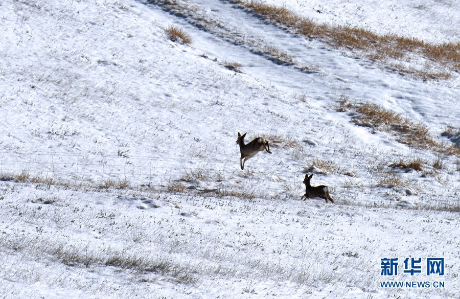 11月12日,一場(chǎng)降雪過(guò)后,祁連山國(guó)家公園甘肅省張掖市民樂(lè)縣境內(nèi)被一層薄薄的白雪覆蓋,成群的野生狍鹿漫步在積雪覆蓋的山坡上。它們時(shí)而追逐玩耍,時(shí)而靜臥休息,時(shí)而覓食充饑,展現(xiàn)出一幅人與自然界和諧共生的畫(huà)面。
