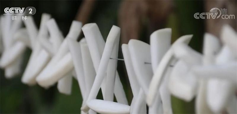 四川省瀘州市納溪區(qū)豐樂(lè)鎮(zhèn)村民 李焱梅:切得時(shí)候是有規(guī)矩的,先切成片,然后切成一條一條的斜杠,牽起來(lái)一片就是一條。