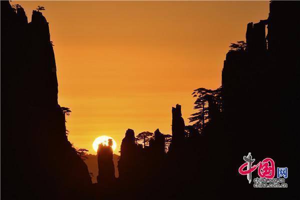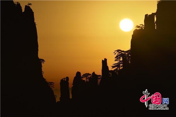 安徽黃山:日出巧石神奇變幻 畫面猶如仙境