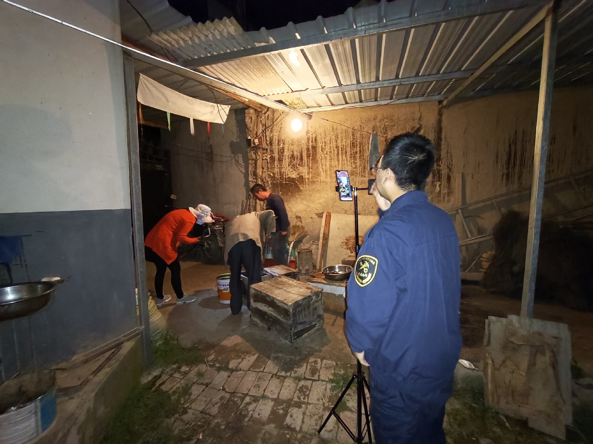 在她身后,蘭州海關幫扶工作隊員們各司其責,有的手扶打光燈隨時調(diào)整補光,有的緊盯攝像機鏡頭及時調(diào)整畫幅和角度,有的作為觀眾與文香蓮女士眼神交流……儼然一個專業(yè)拍攝團隊。