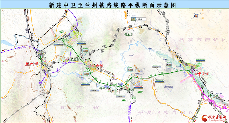 據(jù)了解,銀蘭高鐵中蘭段經(jīng)白銀市靖遠(yuǎn)縣北灘鎮(zhèn)進(jìn)入甘肅境內(nèi),向南途經(jīng)白銀市平川區(qū)、白銀區(qū),蘭州市皋蘭縣、蘭州新區(qū)及永登縣,新建北灘站、平川西站、靖遠(yuǎn)北站、白銀南站、秦王川站5座車站。線路向西連接中川城際鐵路進(jìn)入蘭州西客站,向北直達(dá)中川機(jī)場(chǎng)并連通蘭張三四線,可經(jīng)由武威、金昌,在張掖與蘭新高鐵連通,向東直通銀川,可轉(zhuǎn)向慶陽至西安,構(gòu)建了蘭州到慶陽、平?jīng)龅鹊貐^(qū)的高鐵新通道。