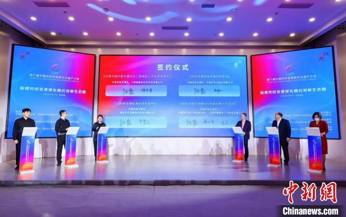 會(huì)上,嘉賓們共同見證了共建中國紡聯(lián)非遺辦長三角地區(qū)工作站合作簽約、紡織非遺出版?zhèn)髅胶献骱灱s、紡織非遺標(biāo)準(zhǔn)化合作簽約、紡織非遺京津冀協(xié)同發(fā)展戰(zhàn)略合作簽約、昆曲《御題棉花園》項(xiàng)目啟動(dòng)簽約、我家的毛巾會(huì)唱曲兒授權(quán)合作簽約、共建河北大學(xué)高陽文化研究中心合作簽約等多項(xiàng)合作的達(dá)成。舉辦了中國紡織非遺推廣大使“推進(jìn)城鄉(xiāng)融合發(fā)展、全面實(shí)現(xiàn)鄉(xiāng)村振興”倡議行動(dòng)。