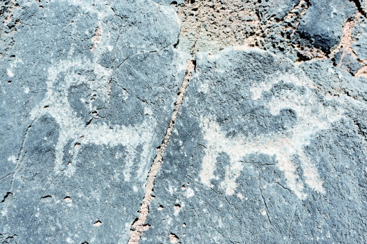 肅北縣大黑溝巖畫是全國重點(diǎn)文物保護(hù)單位,巖畫形成時(shí)間初步斷定在春秋、戰(zhàn)國至西漢時(shí)期,位于肅北縣城東約40公里處的大黑溝。巖畫共有34組,圖案190多幅,零亂分布在3.5公里長的山溝中,畫面內(nèi)容多為射獵、放牧、練武、乘馬作戰(zhàn)等場景和北山羊、野牛、野駱駝等動(dòng)物,畫面表現(xiàn)形式多以凹刻和凸刻,巖畫大多刻在避風(fēng)向陽的陡峭花崗巖和石灰石上。