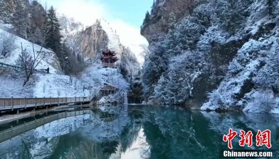 航拍甘南大峪溝雪景,銀裝素裹美如畫(huà)。