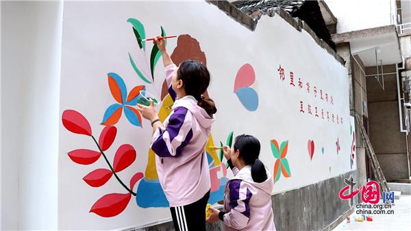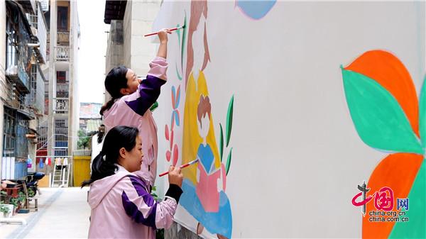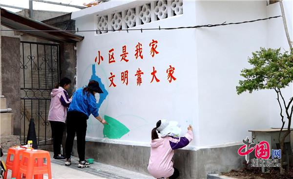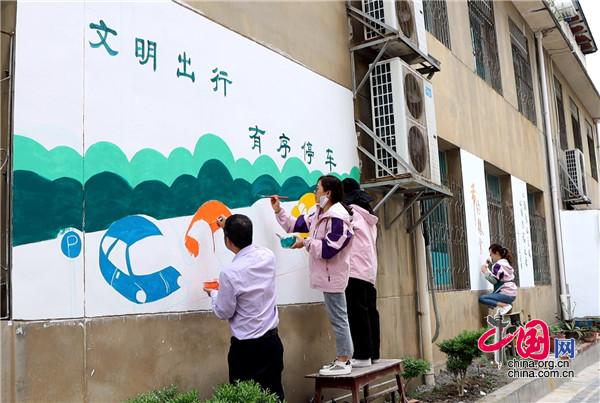 現(xiàn)場(chǎng),大家手持畫(huà)筆和顏料板,相互分工協(xié)作,以墻為紙,認(rèn)真細(xì)致的設(shè)計(jì)墻繪內(nèi)容,筆起筆落間,一幅幅栩栩如生、色彩絢麗的城市文明新畫(huà)卷躍然墻上。