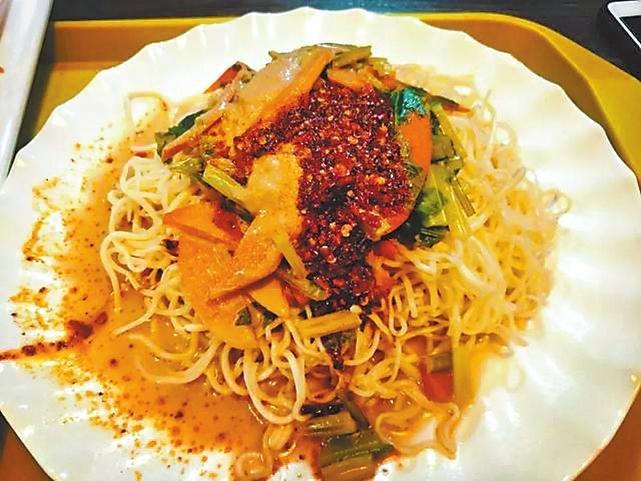 一碗標(biāo)準(zhǔn)的涼州涼面,必須是滿滿一碗,總要冒高點(diǎn)才夠分量。鹵汁分葷、素兩種。鹵子里有豬肉抑或牛肉片、土豆塊、豆腐、豆角、胡蘿卜、干白菜等,攪兩筷子,每一根面條都蘸上了鹵汁的感覺,看起來就非常有食欲。食客們埋頭呼嚕呼嚕開吃,相當(dāng)過癮。雖然面是涼的,但鹵是熱的,完全不需要擔(dān)心會(huì)燙嘴,面條很筋道,味道很濃郁!傳說左宗棠多年征戰(zhàn),戰(zhàn)事吃緊,為解決將士吃飯方便的問題,便想出冷面熱鹵的方法。吃涼州涼面,吃的是一種酸辣風(fēng)味,更是一種對(duì)小城難以割舍的情愫。