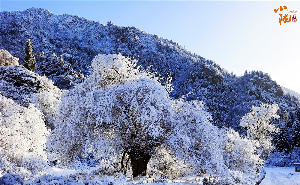 冬日的吐魯溝,大地覆蓋著厚厚的白雪,輕柔、松軟、潔白無(wú)瑕,放眼望去,茫茫大地,銀裝素裹,北風(fēng)吹來(lái),萬(wàn)樹(shù)銀花,潔白的雪浪此起彼伏。