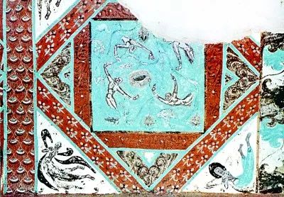 在莫高窟420窟中,還有一幅展現(xiàn)隋代游泳活動(dòng)的畫面。圖中兩位游泳者正在模仿爬行的動(dòng)作,呈兩腿交替打水、兩臂輪流劃水狀,頭部均轉(zhuǎn)向一側(cè)吸氣,類似現(xiàn)在自由泳中的基本動(dòng)作和吸氣方式。