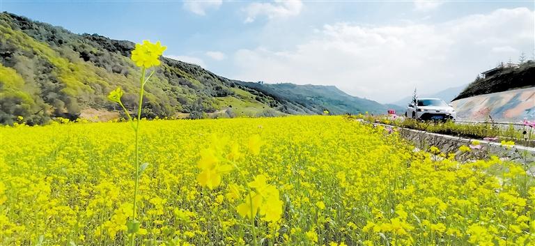 金秋時節(jié),沿太子山旅游風情大通道臨夏縣段景色如詩如畫,油菜花、墻體彩繪與遠山、藍天白云相映成輝,令人賞心悅目。