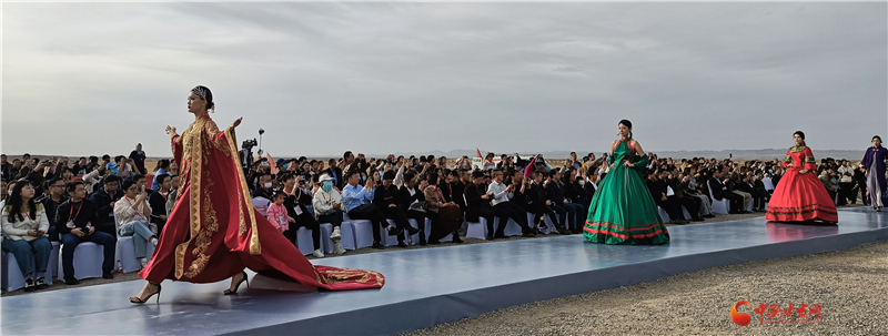 走秀的模特也表示,在玉門關(guān)下走秀很特別,行走時(shí)有清風(fēng)在面頰拂過,特別有感覺,大地舞臺(tái)厚重寬廣更有時(shí)尚感。