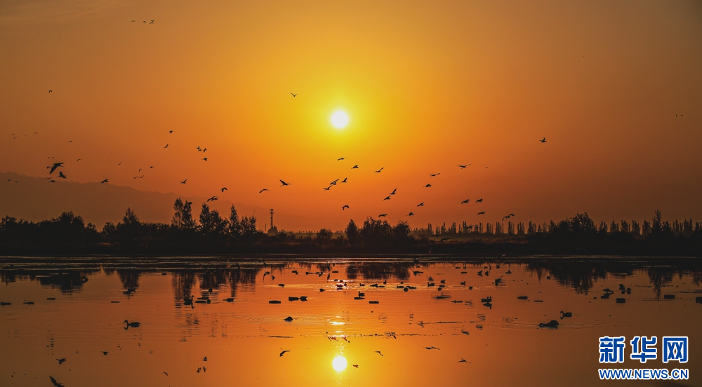 近日,在甘肅省張掖國(guó)家濕地公園,成群的白鷺迎著朝陽(yáng)悠然自得地飛翔、覓食、嬉戲,構(gòu)成了一幅朝陽(yáng)伴鷺飛的美麗畫(huà)卷。新華網(wǎng)發(fā)(陳禮 攝)
