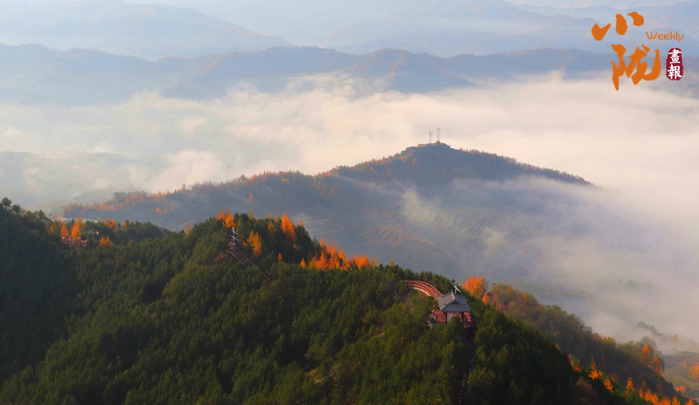 一場秋雨過后,境內云華山呈現出一瀑萬頃、白浪翻滾的云海景象。