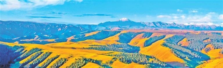 初冬的祁連山,顯示出獨(dú)特韻味。主峰在藍(lán)天白云的映襯下顯得肅穆大氣。周圍群峰羅列、層巒疊嶂,高低延綿的山脈在陽(yáng)光的照耀下交相輝映,近處的群山被此起彼伏的林海包圍,像一道道美麗的波浪。祁連山脈山高、天藍(lán),大自然賜予這片土地最原始的靈秀與遼闊。