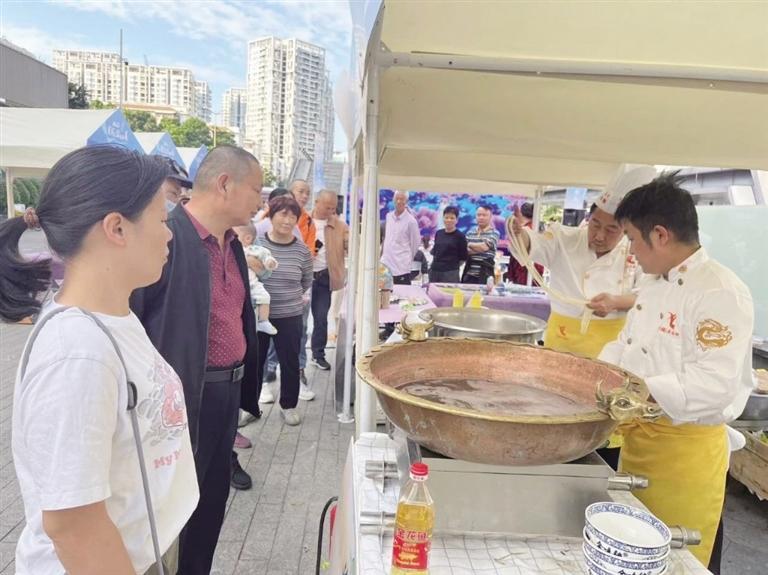 向深圳市民展示蘭州牛肉面技藝