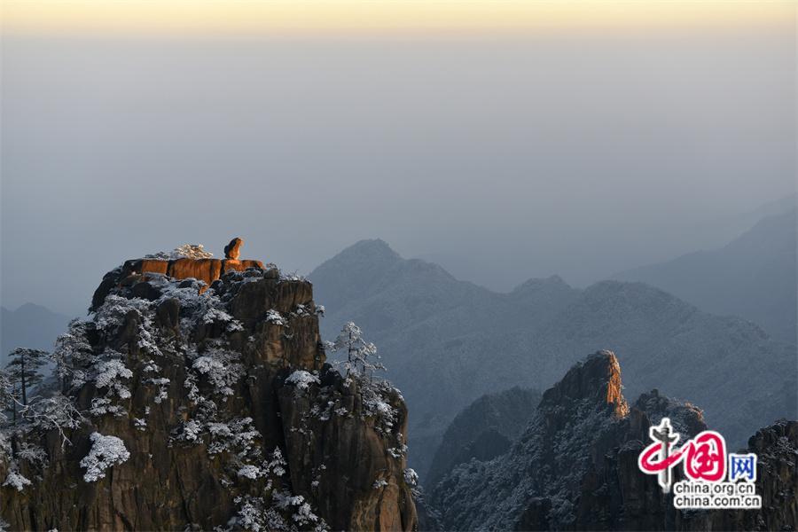 2024年1月2日夜,黃山下了新年的第一場初雪。1月3日早雪后的黃山銀裝素裹,在陽光下晶瑩剔透。本組照片拍攝于獅子峰。獅子峰在黃山后山的北海景區(qū),這里群峰競秀、巧石眾多,清涼臺、猴子觀海都這座山上,“不到獅子峰不見黃山蹤”是北海的風(fēng)景窗。