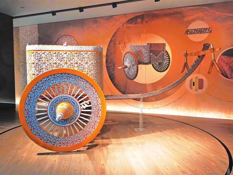 馬家塬車輿博物館特別舉辦了《車轔馬蕭 西戎絕唱——馬家塬出土車輿文化展》專題展覽,綜合展示了馬家塬遺址考古發(fā)掘成果與古代車輿文化,2023年8月正式對(duì)外開放。展覽內(nèi)容共分為“奢華葬俗 驚世絕唱”“載馳載驅(qū) 旌旗獵獵”“縱橫馳騁 多元匯聚”三個(gè)部分。展覽中最引人注目的是大量設(shè)計(jì)考究、工藝復(fù)雜的隨葬車輛。