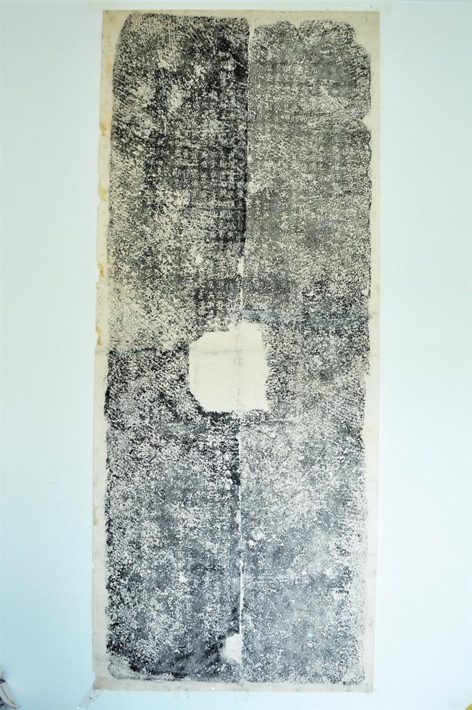 該碑被一分為二豎直解開,鑲嵌于酒泉市舊城東門洞內(nèi)壁西側(cè),用做石柱。原碑無碑額,呈長(zhǎng)方體石柱狀。碑身高236厘米,兩塊并寬91厘米,厚29厘米。碑陽漢文24行,左石13行,右石11行,每行字?jǐn)?shù)不等;碑陰回鶻文32行。石碑中間被鑿毀,陽面的漢文有十多處受到損毀。陰面因長(zhǎng)期外露,磨損非常嚴(yán)重,回鶻文字跡已很難辨析。碑陽因長(zhǎng)期嵌于墻內(nèi),漢字磨損較少,基本不影響對(duì)碑文內(nèi)容的理解。