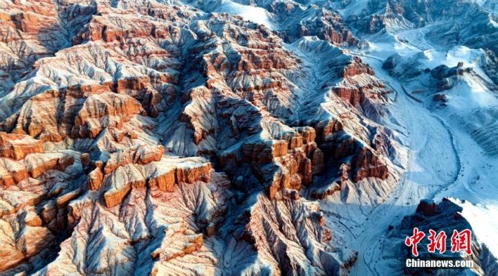 1月24日,雪霽初晴的甘肅省張掖市臨澤縣板橋鎮(zhèn)境內(nèi)的紅溝丹霞銀裝素裹,雪景如畫。圖/CNSphoto 楊瀟 攝