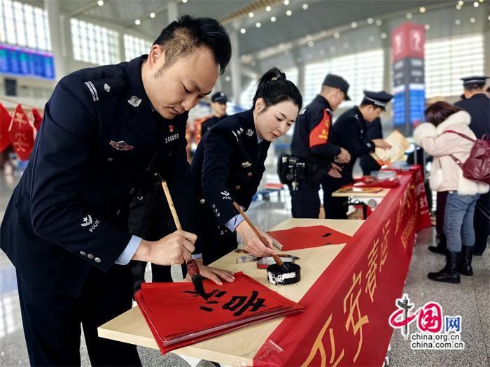 本次活動(dòng)由莆田車站派出所牽頭組織,聯(lián)合中信銀行、莆田站共同開(kāi)展。活動(dòng)期間,民警與志愿者在莆田站甬廣場(chǎng)候車室為旅客發(fā)放高鐵安全宣傳單及春聯(lián),并由青年民警現(xiàn)場(chǎng)書(shū)寫(xiě)春聯(lián)、福字送給來(lái)往旅客,將平安、溫馨傳遞給每一個(gè)人。