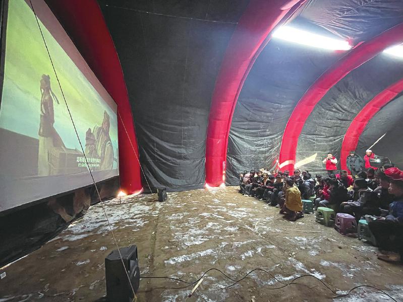 冬日的嚴寒擋不住震區(qū)群眾的觀影熱情。帳篷內,電影《英雄若蘭》《新神榜:楊戩》先后放映,孩子們分排而坐,被影片生動有趣、跌宕起伏的情節(jié)深深吸引,不時傳出歡聲笑語。“志愿者給我們放電影,豐富了我們的文化生活。”正在觀影的村民呂鵬說。
