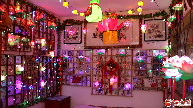 走進(jìn)馬玉琳的家,精美的宮燈、雅致的荷花燈、喜慶的掛件、彩色的燈帶錯(cuò)落有致地掛在木制格子架上,濃濃的年味兒撲面而來,數(shù)百盞彩色花燈同時(shí)點(diǎn)亮,將屋內(nèi)裝扮成“滿房燈火迎新春”的喜慶景象。