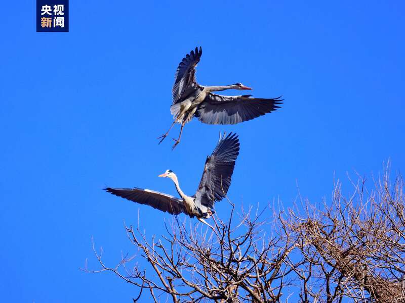 隨著氣溫回升,位于子午嶺腹地的甘肅省慶陽(yáng)市合水縣太白鎮(zhèn),有成群結(jié)隊(duì)的蒼鷺如約從南方飛來(lái)。它們或落在樹(shù)冠,偎依在一起,或維修著往年搭建好的巢穴,開(kāi)啟新一輪的繁衍生息。子午嶺腹地是天然的生態(tài)林區(qū),近年來(lái),當(dāng)?shù)鼐C合實(shí)施固溝保塬、退耕還林、植樹(shù)造林等工程,森林覆蓋率達(dá)到69.82%,引來(lái)眾多珍稀鳥(niǎo)類繁衍生息。(總臺(tái)記者 焦?。?/p>