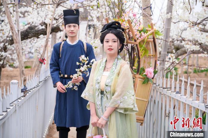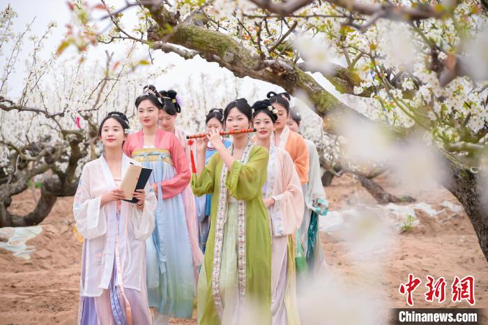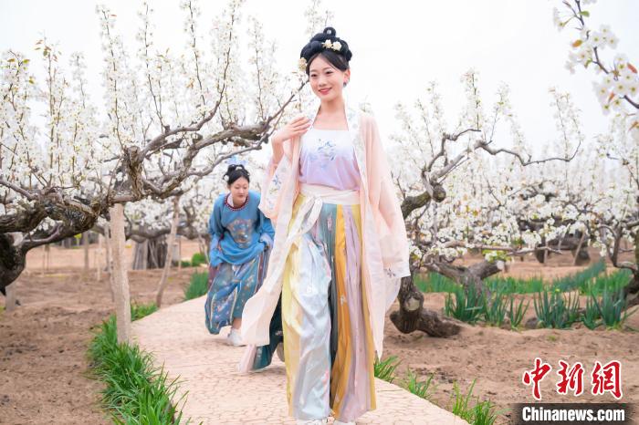 連日來,山東萊陽呈現(xiàn)“千樹萬樹梨花開”的盛景,上萬畝梨園內(nèi)的梨花次第開放,吸引游客著古裝游園。
