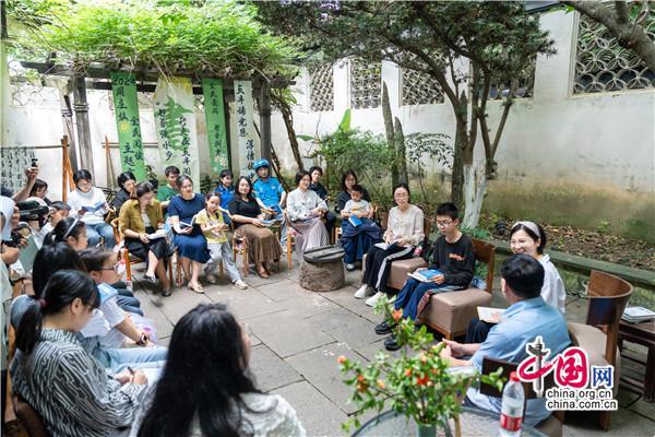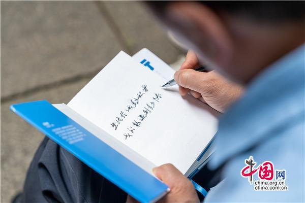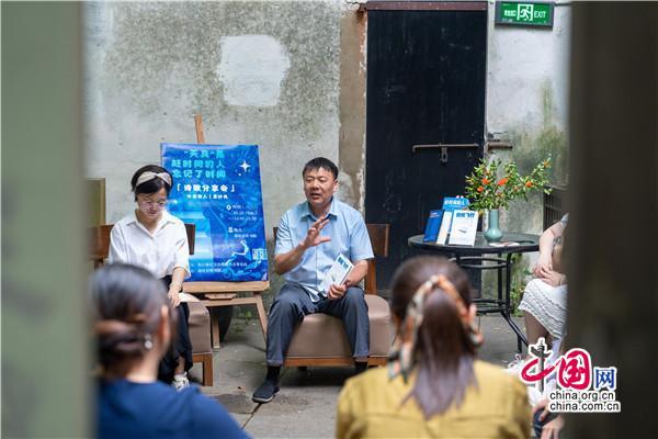 在書院小院里,一位腳穿布鞋,親切隨和,滿臉笑容的男士正在分享,從《趕時(shí)間的人》創(chuàng)作心得,到新書《低處飛行》作品朗誦和創(chuàng)作故事點(diǎn)滴,還有撿破爛、送外賣的人生經(jīng)歷,深情的講述,傳遞的是始終不曾改變的對(duì)寫詩的執(zhí)著與熱愛。