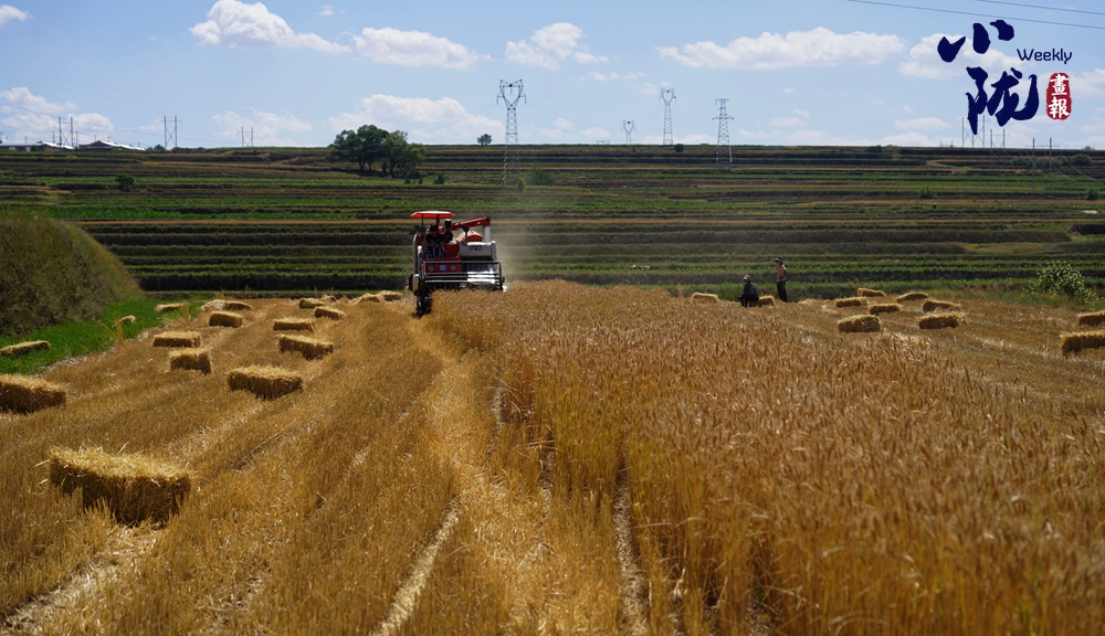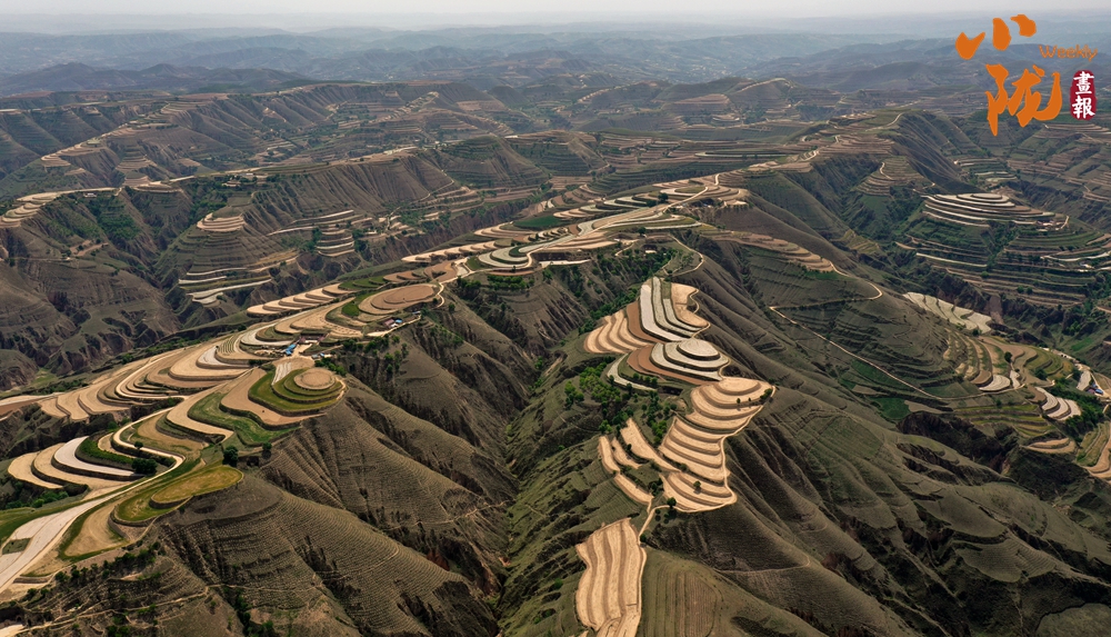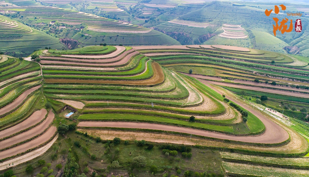 從高空俯瞰下去,在廣袤的大地上,丘陵被開(kāi)辟成了一層又一層的梯田,金黃的麥浪和嫩綠的秧苗鋪滿田間。