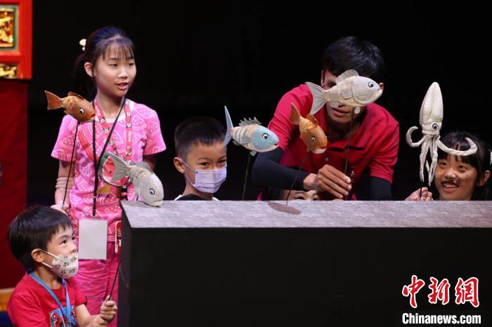 7月10日,臺灣傳統(tǒng)藝術(shù)中心2024兒童戲曲巡演活動“請囡仔來看戲”在臺北起跑。圖為臺北木偶劇團在記者會現(xiàn)場為兒童表演。(臺灣傳統(tǒng)藝術(shù)中心 供圖)